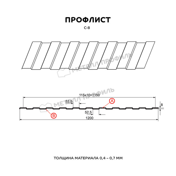 Профлист Металл Профиль МП-10 0,5 NormanMP RAL 8004 Коричневая медь | B