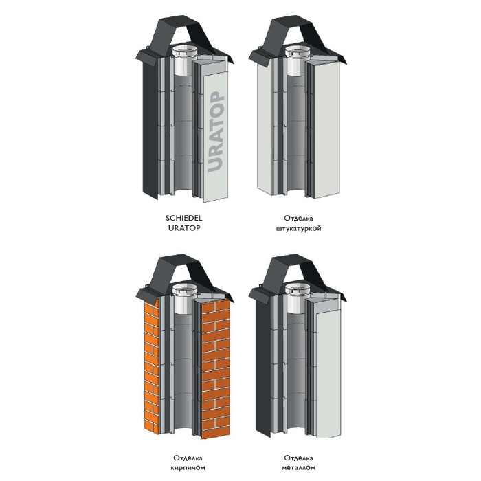 Модульный комплект дымохода ISOTOR, 0,33м., с зонтом трапецией, без вентканала, диаметр 25 см, Schiedel